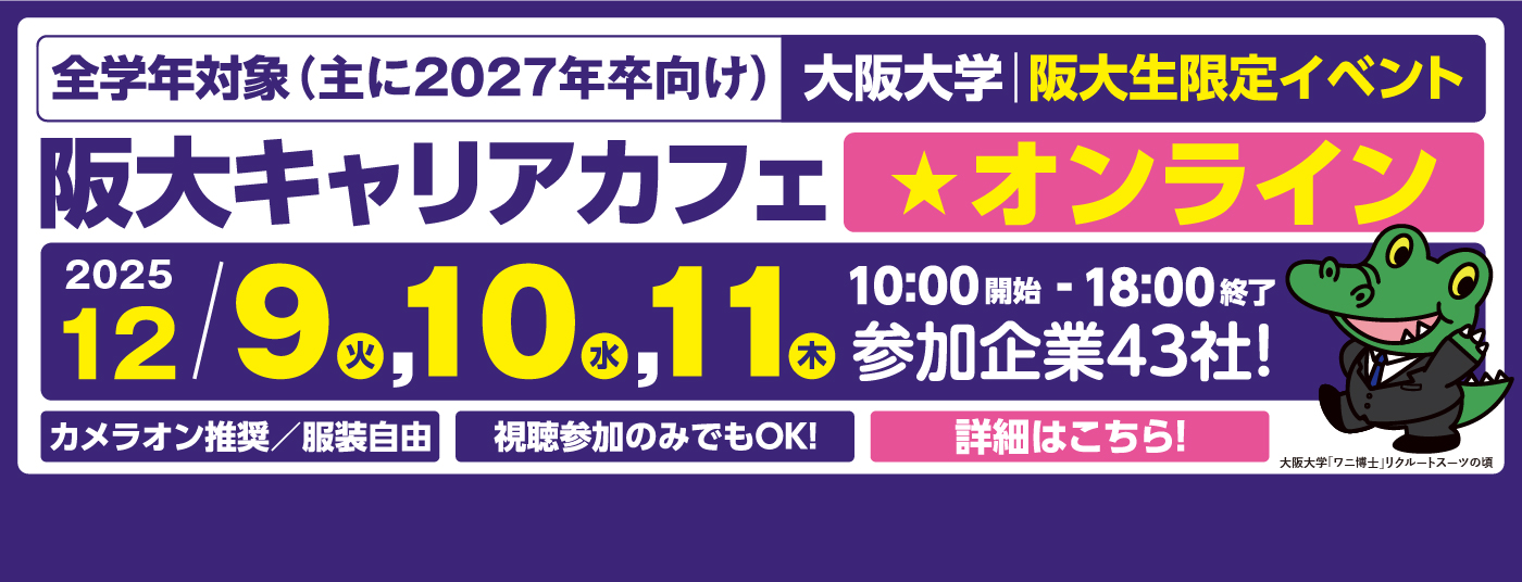 - お知らせ 大阪大学キャリアサポーター企業一覧を更新しました。